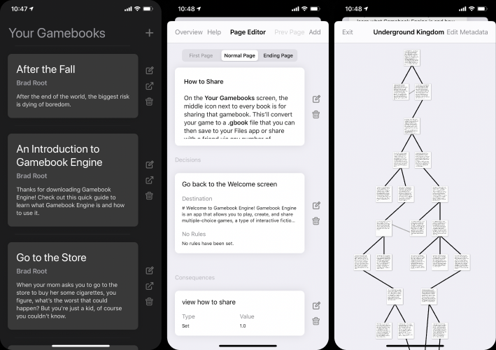 Gamebook Engine is a fully featured app for creating and playing gamebooks, a type of interactive fiction where the player gets to make decisions that influence the story. |