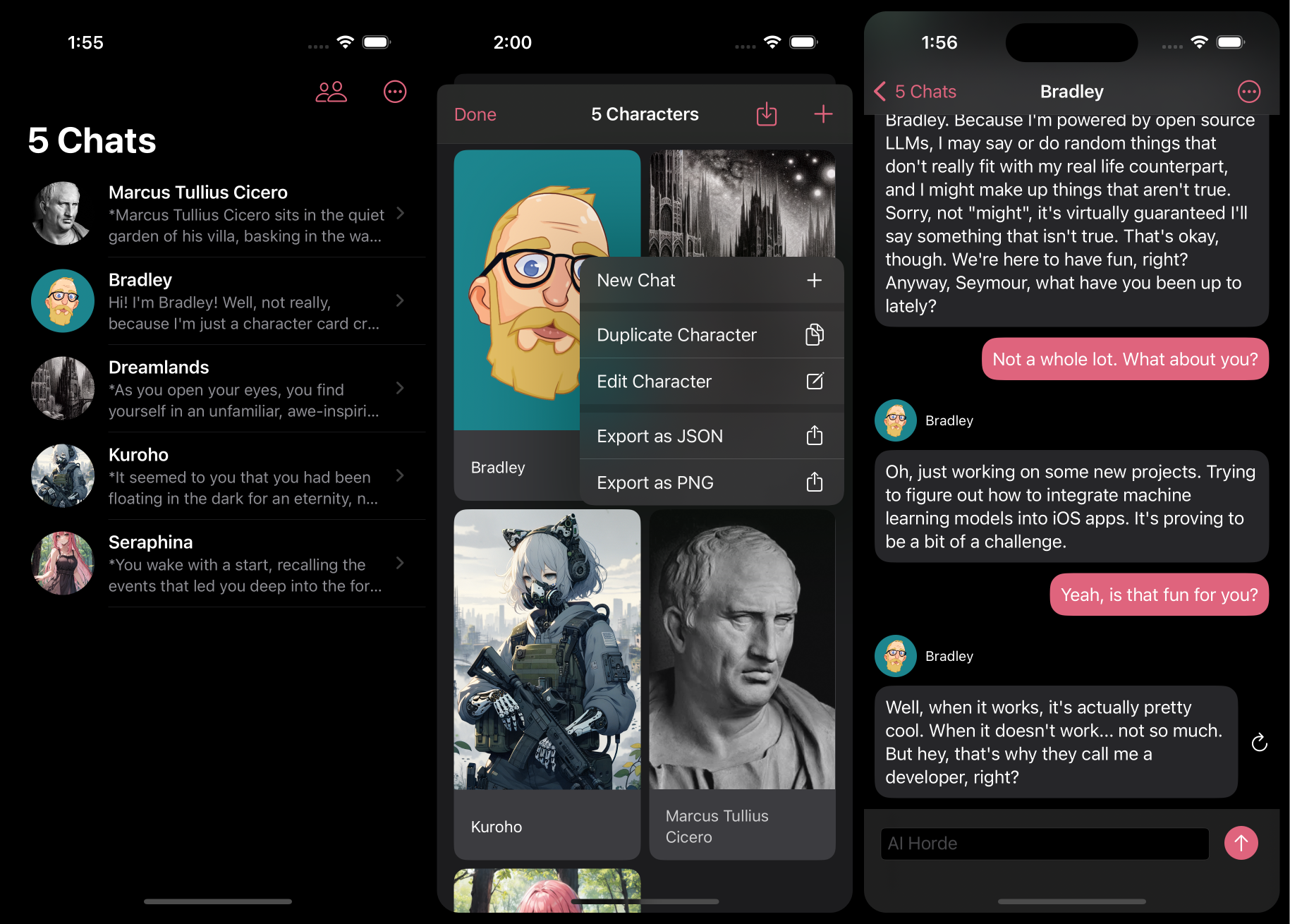 Inneal is a LLM-powered chatbot client specifically built for the AI Horde. Import or craft Tavern-compatible character cards, and chat with them for free, powered by open source LLMs, with compute provided by enthusiastic volunteers around the world. |